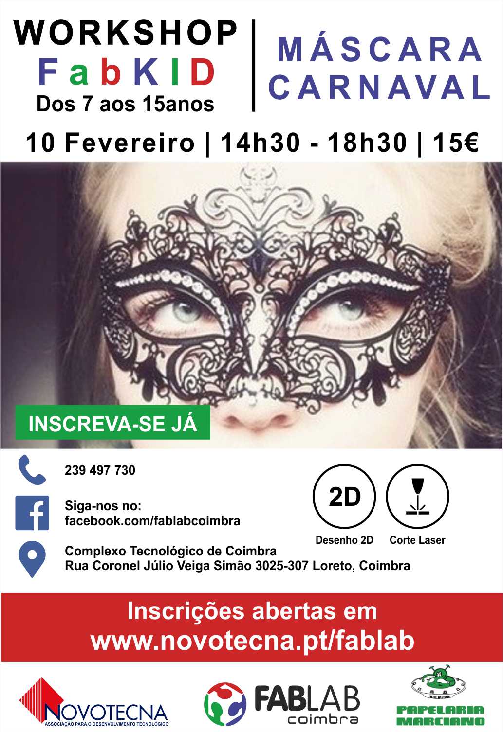 Para informações complementares poderá entrar em contacto com o FabLab Coimbra através do email fablab@novotecna.pt ou pelo telefone 239 497 730.